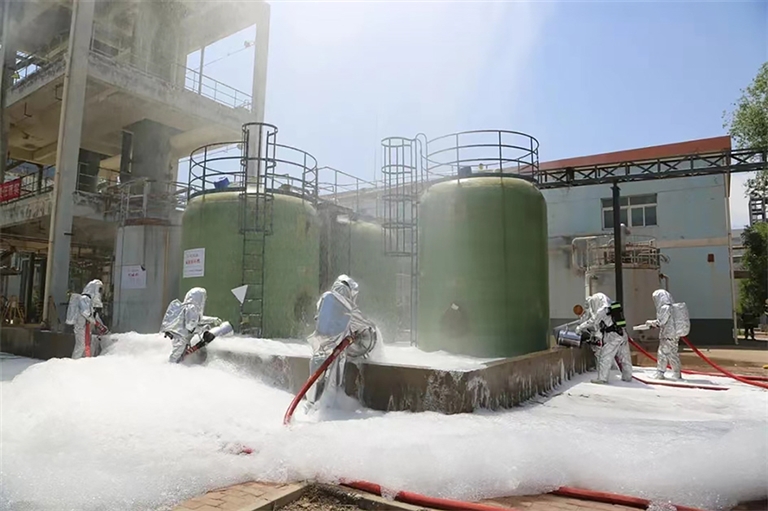 拉动演练根据石油化工灾情事故处置程序与指挥要点,采取“临机设置灾情、随机拉动演练”方式和“编队出动、单元作战、跨区增援”模式进行,全要素、全时段开展拉动演练。围绕接警调度、队伍集结、灾情侦察、专家研判、人员搜救、初战控火、冷却抑爆、工艺处置、泡沫供给、协同作战、安全管控、紧急避险等科目,立足实战需求,坚持“问题导向”,先后采用了冷却抑爆和“五梯次、三叠加、全泡沫”以及转段冷却等战术战法。主要开展无人机建模和制空侦察、大面积无规则流淌火扑救、“防火堤池火+罐火扑救”、储罐固定和半固定消防设施应用、车辆应急操作、泡沫液远程供给和泡沫液代储厂家现场装卸等科目。科目内容紧贴实战、针对性强,全面检验了编队快速响应、协同作战、应急处置能力,全体参演人员严格按照操作规程,分工明确、密切配合、协调行动,高标准、高质量的完成了此次演练任务,充分展现了不畏艰险,敢打敢上的优良作风。同时,结合演练科目,对高喷车等进行了作战效能测试,检验了车辆装备的实战能力。
