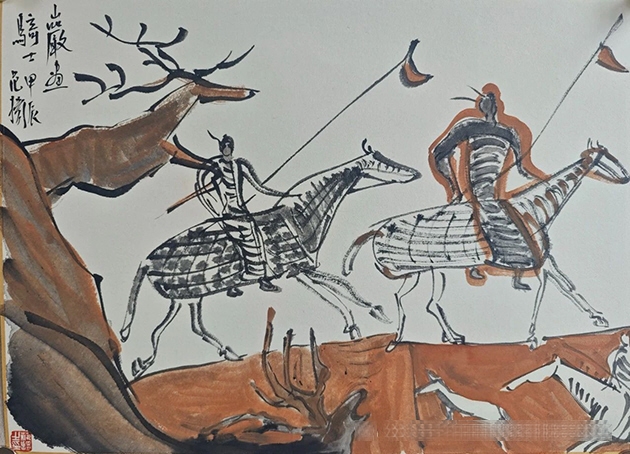 参展作品(范扬《岩画骑士》33cmx45cm 中国画) 图片来源:巴彦淖尔文旅