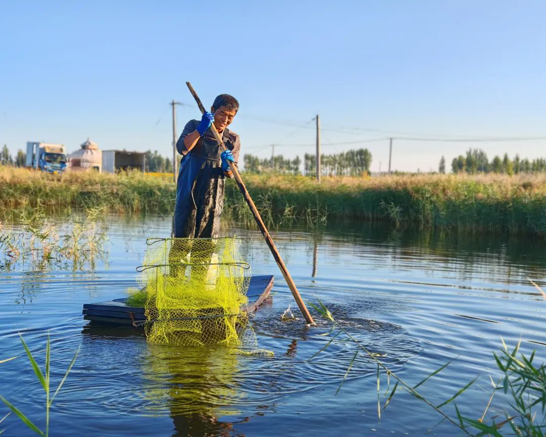 五原县俊义水产养殖合作社技术股东尚树红介绍说:“我们4月底5月初就开始放苗,28亩左右投放50万尾虾苗。这两天每天出三百多、四百斤虾,都销往周边的市场,一直可以销售到国庆期间。”