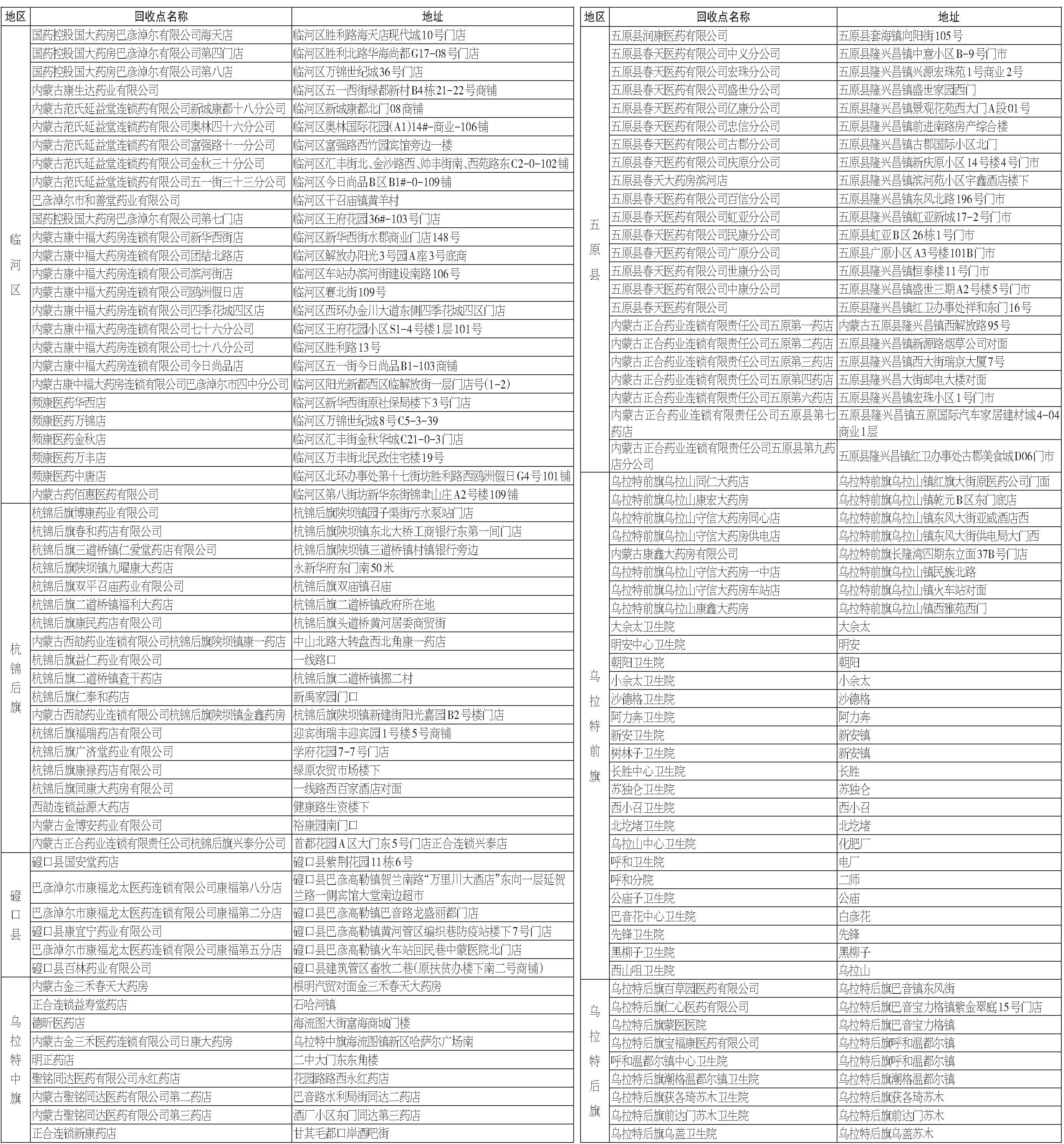 据了解,内蒙古范氏延益堂连锁药有限公司新城康都十八店、奥林国际花园四十六店、富强路十一店、金秋华城三十店、今日尚品三十三店也都在回收过期药品,大家可以拿着过期药品到店内兑换口罩、洗手液、花露水、湿巾、酒精等用品。