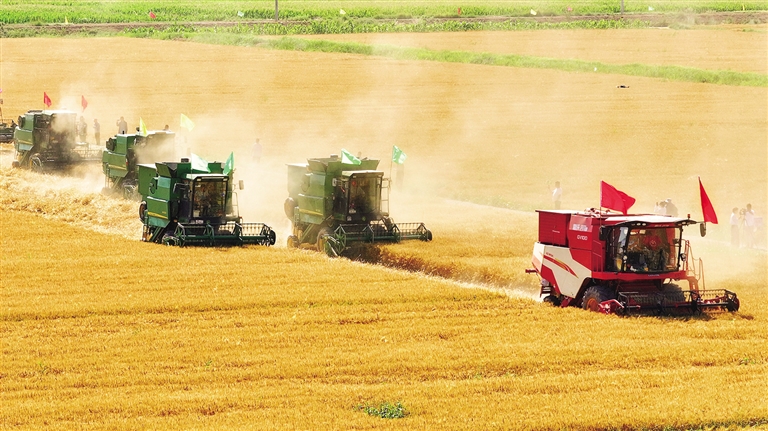 在建设完成的高标准农田里,我市积极推广优良品种、先进农机和技术,提高水土资源利用率和土地产出率,加快传统农业向现代农业转型。2023年,全市粮食产量达58.89亿斤,实现“二十连丰”。