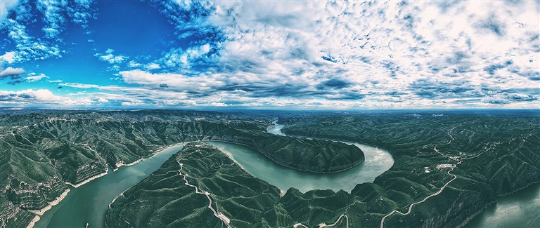 从高空鸟瞰,中国北方一条大河呈现一个大大的“几”字经天亘地。