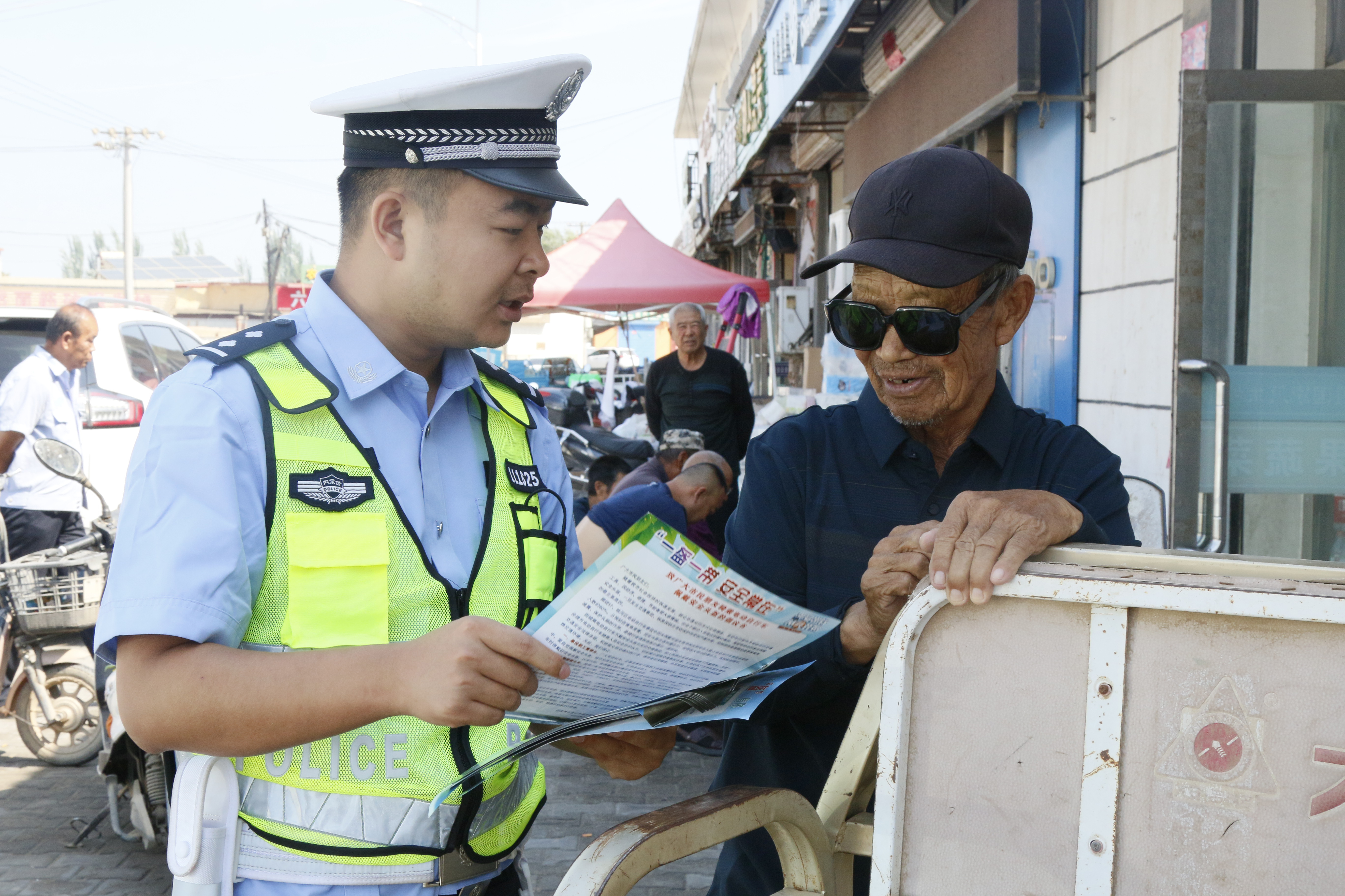 近日,临河交管大队走进农牧区开展农用三轮车禁止载人交通安全宣传活动,通过播放交通安全警示片、宣讲交通安全知识等形式,提升电动三轮车驾驶人的安全意识。