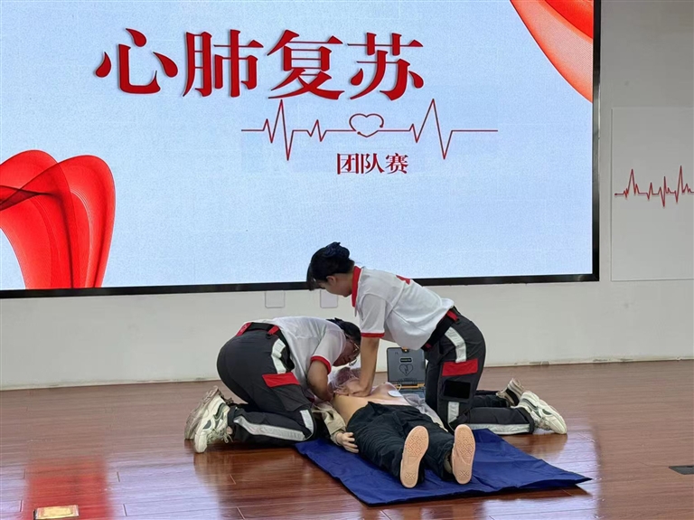 在心肺复苏技能比赛现场,各队选手专心致志地进行操作,评估患者意识、摆放正确体位、开放气道、判断呼吸、胸外心脏按压、判断循环、除颤……“通过比赛,我规范和提升了心肺复苏技能,学会了如何在压力下保持冷静,如何在瞬息万变的急救场景中迅速做出正确判断。这些宝贵的经验与能力,使我在面对生命挑战时,更加自信、从容,为守护生命贡献自己的一份力量。”临河区代表队的田梦璐说。