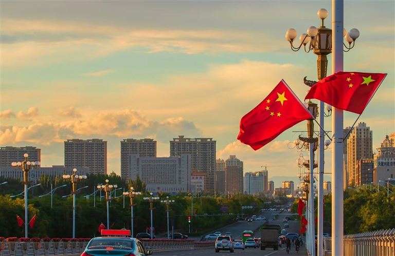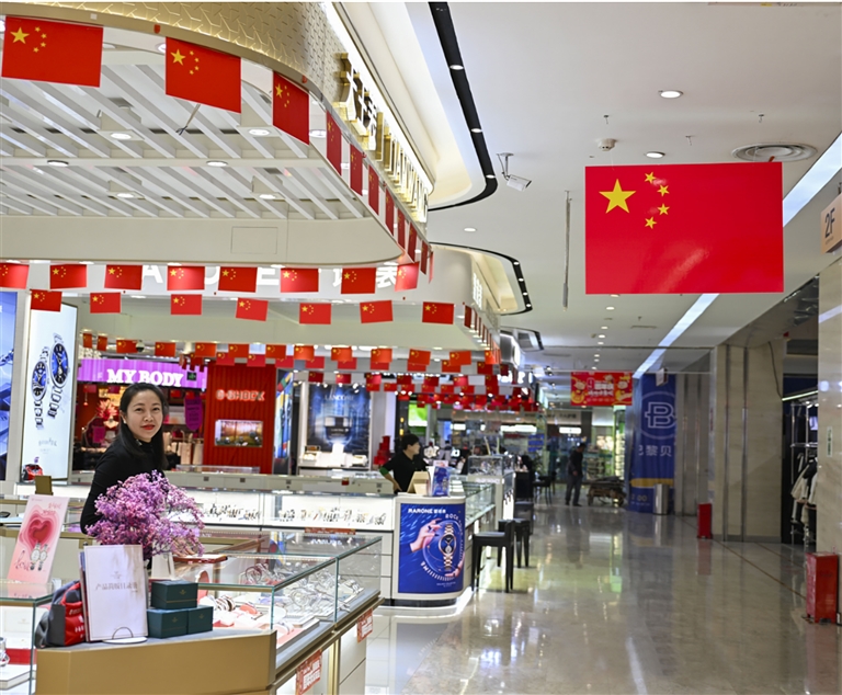 这一抹抹“中国红”表达着人们对祖国的热爱和祝福,也映衬出幸福生活最红火的底色。