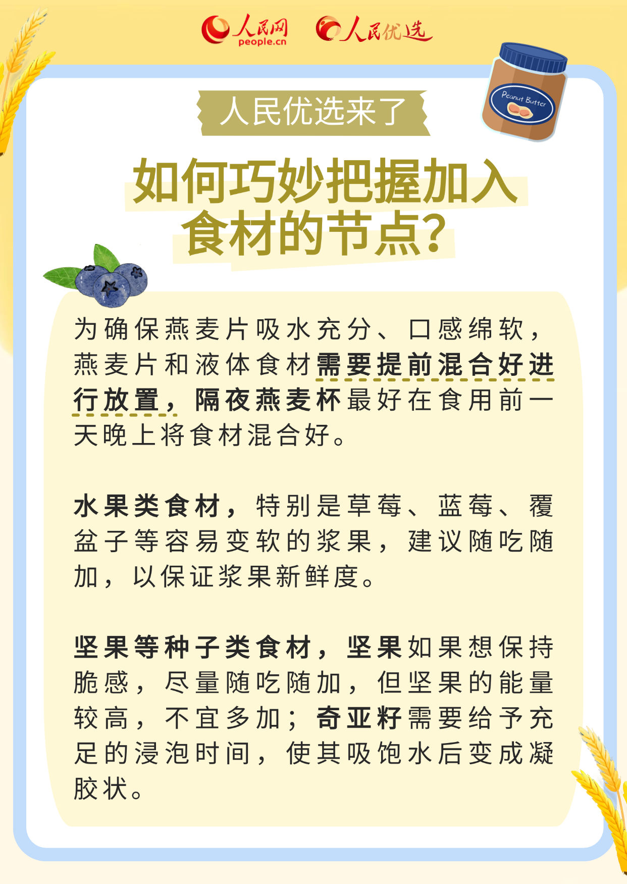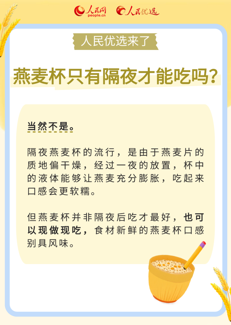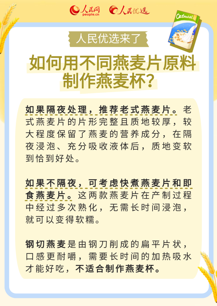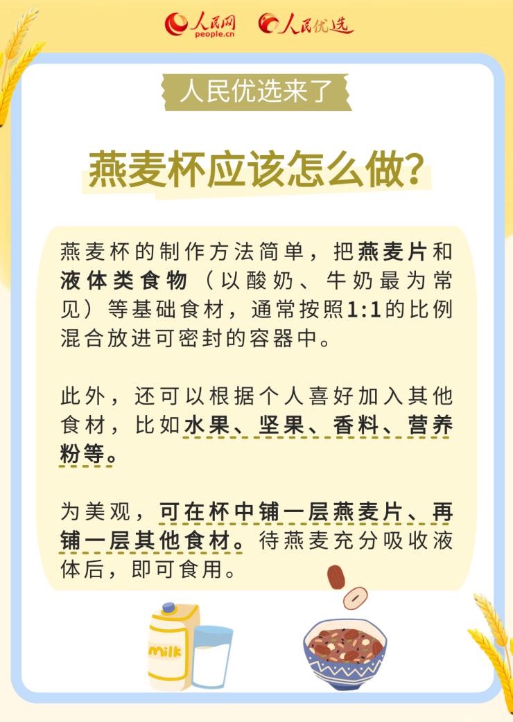 近年来,燕麦杯因制作便捷、美味可口、营养丰富等原因备受大众喜爱。关于制作一份“合格”的燕麦杯,你是否有很多疑问:怎样挑选燕麦片等各种食材?燕麦杯只有隔夜才“正宗”吗?燕麦杯可以长期频繁食用吗?