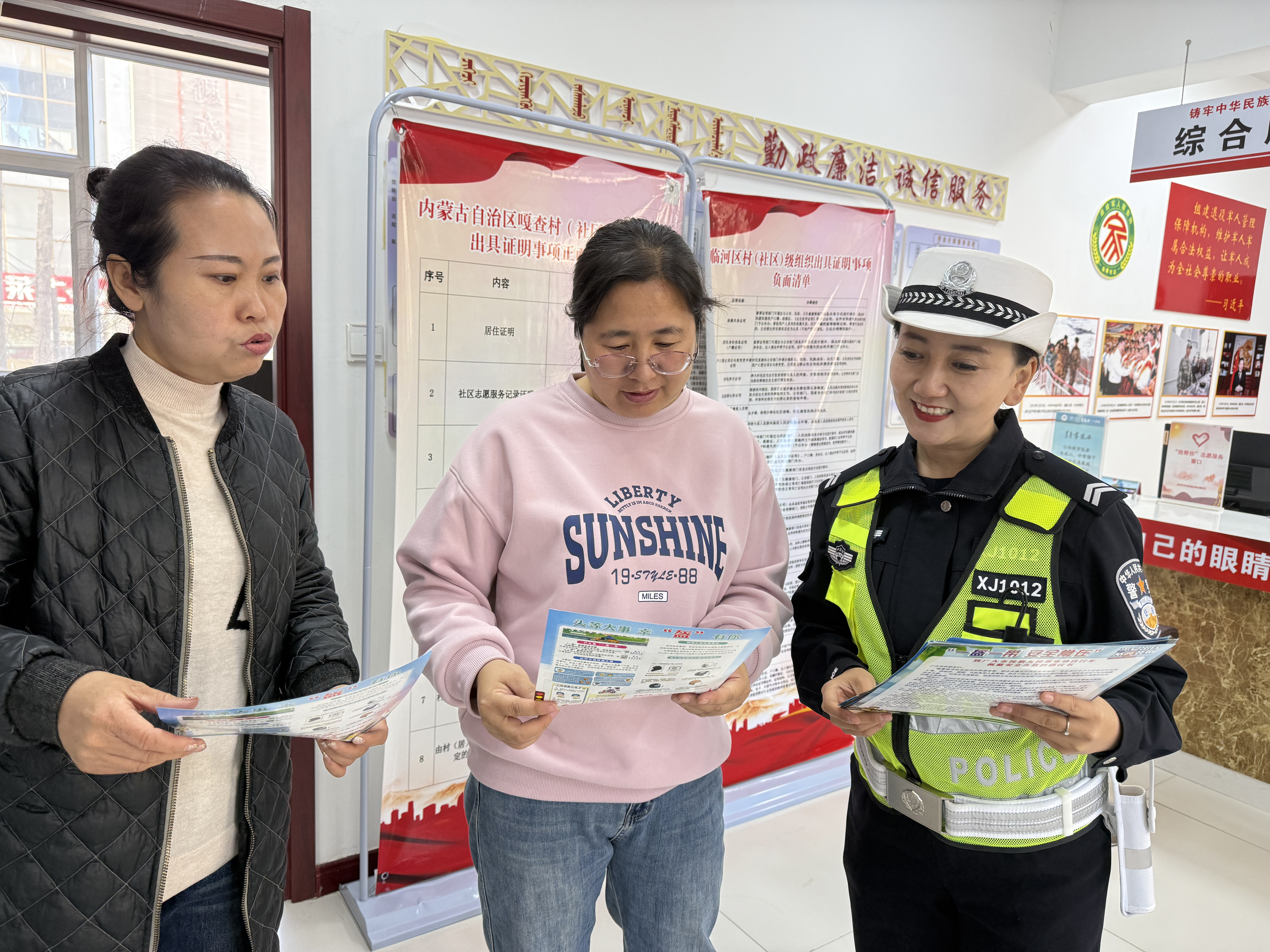 近日,临河区交管大队宣教中队民警走进金穗社区活动中心,与居民“面对面”,发放交通安全宣传材料,讲解近年来辖区发生的典型交通事故案例,增强居民安全意识,预防交通事故的发生。