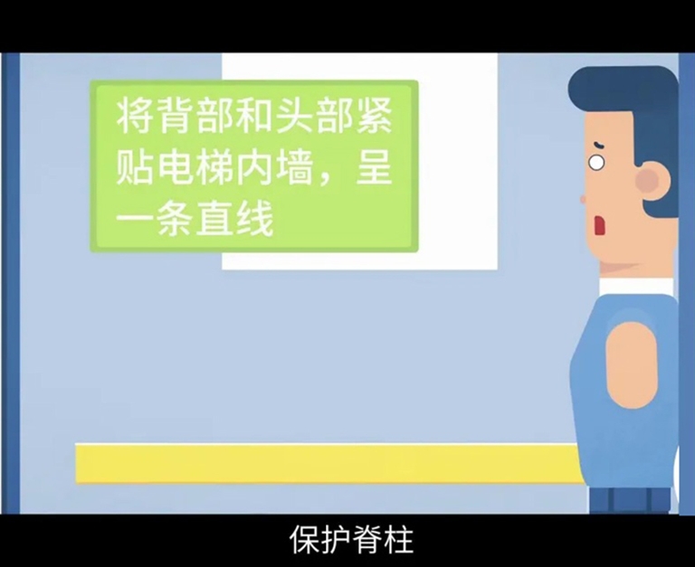 迅速把每层楼的按键都按下,当紧急电源启动时,电梯会马上停止继续下坠。将背部和头部紧贴电梯内墙,呈一条直线,运用电梯墙壁作为脊椎的防护,同时弯曲膝盖、提起脚跟,以减缓冲力。如果电梯内有扶手,最好紧握把手,防止因重心不稳而摔伤;如果没有扶手,可扒住电梯壁。