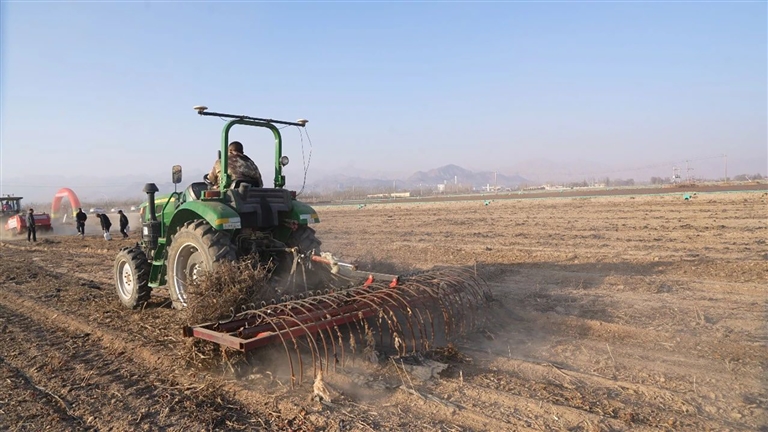“以前残膜留在地里,被风吹得到处都是,用耙子也清理不干净,影响了土质和庄稼的质量不说,还影响了人居环境。现在不一样了,自从有了废旧地膜回收政策,地里面残膜回收都是机械化了,对我们来说真的很方便,地里面干净多了,产量就上去了,环境看着也好起来了。”五支渠村二组村民赵德章告诉记者。