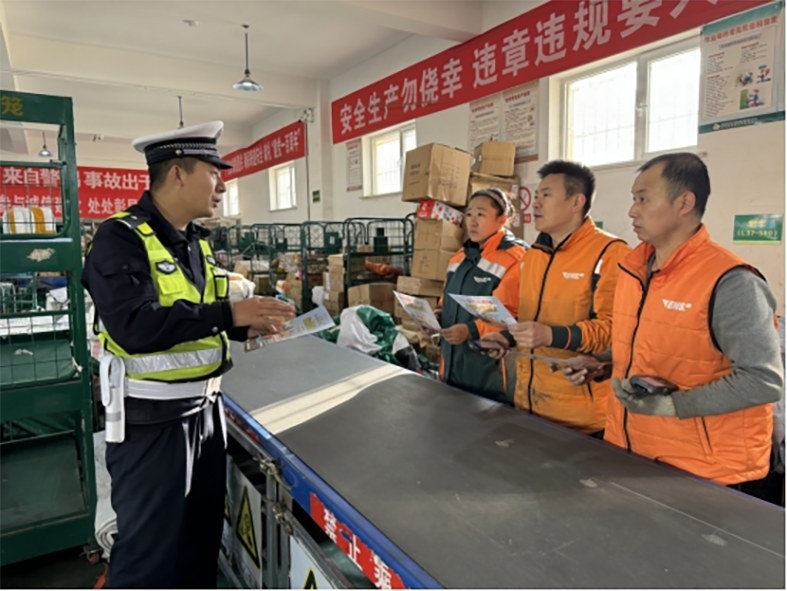 第十三个“全国交通安全日”即将来临,为从源头上预防和减少道路交通事故,提高快递配送员交通安全意识,近日,乌拉特中旗交管大队民警走进邮政快递公司,以“文明交通 携手共创”为主题,开展冬季道路交通安全宣传活动。