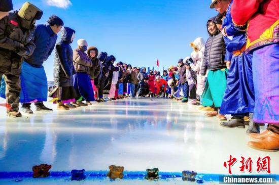 近日,在内蒙古自治区通辽市扎鲁特旗查布嘎图苏木南乌嘎拉吉嘎查,牧民们在冰封的乌嘎拉吉河面上展开了一场“冰上阿日嘎”比拼。