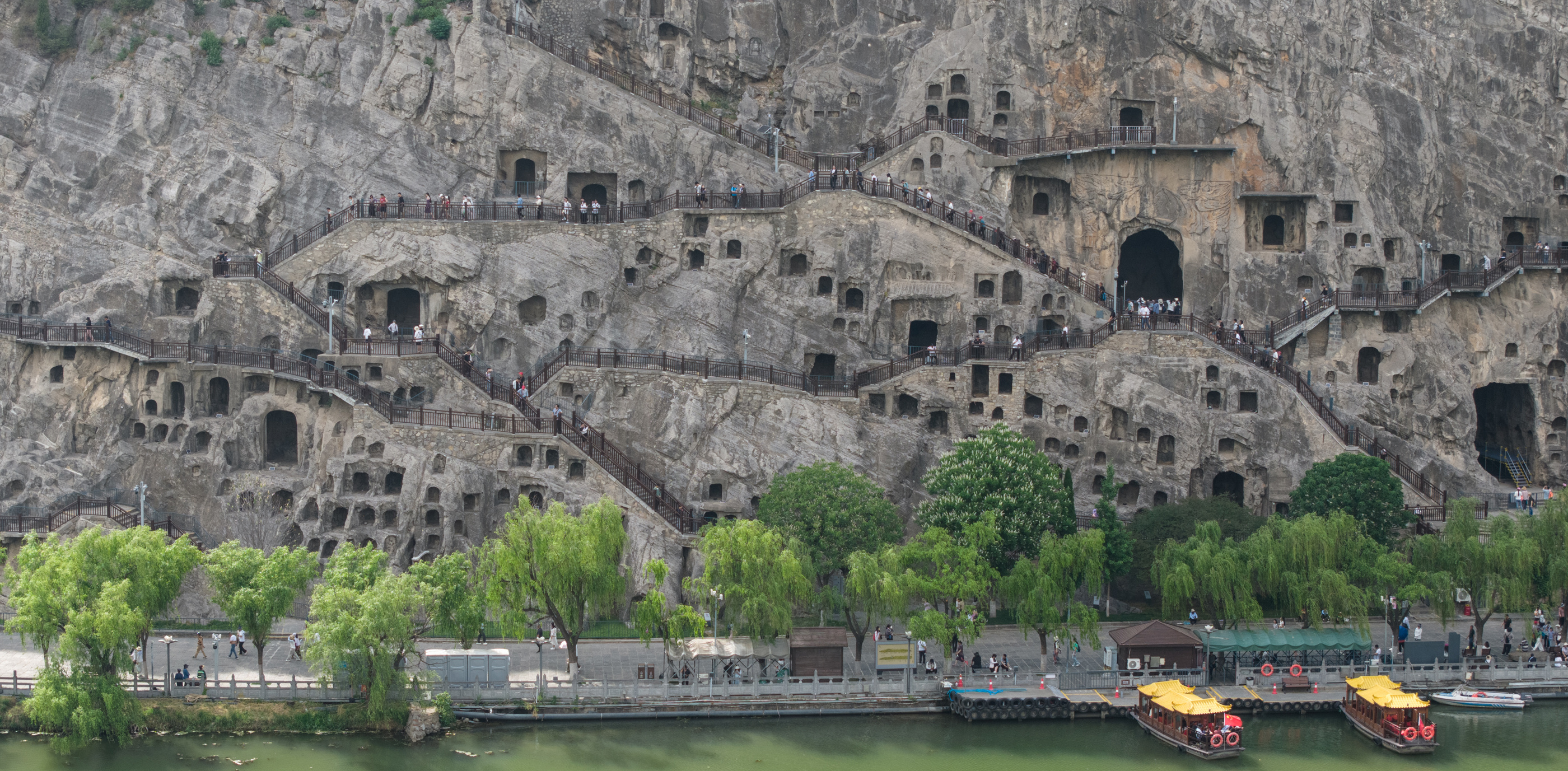 △伊水河畔的龙门石窟。(总台央视记者范凯、姜新刚拍摄)