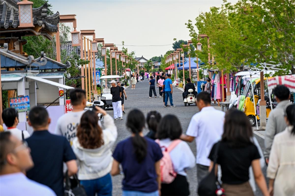 7月28日,游客在三合民俗风情步行街打卡。