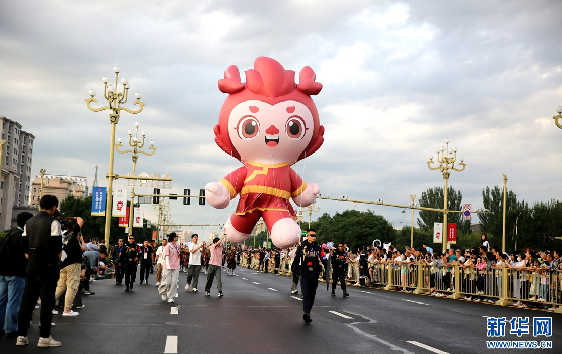 7月29日,嘉年华活动现场展示的内蒙古自治区第十一届少数民族传统体育运动会吉祥物“赤龙儿”气模。新华网 杨腾格尔摄