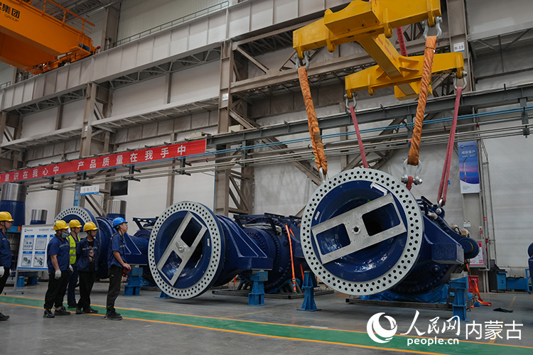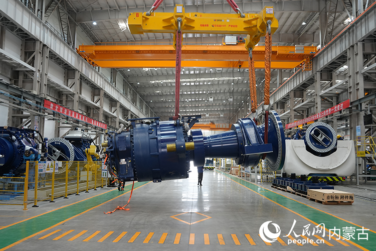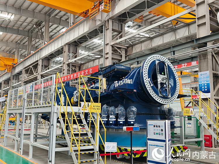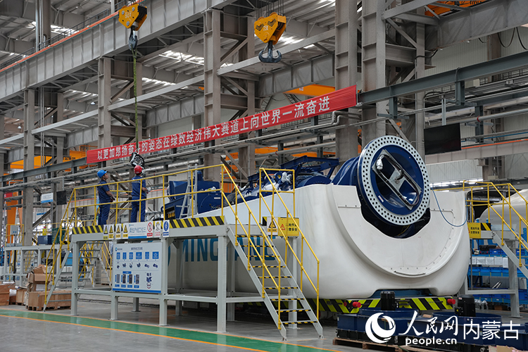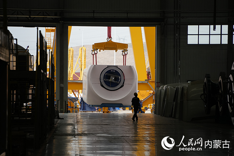 明阳新能源智能制造产业园内正在组装的风机。人民网记者 张雪冬摄