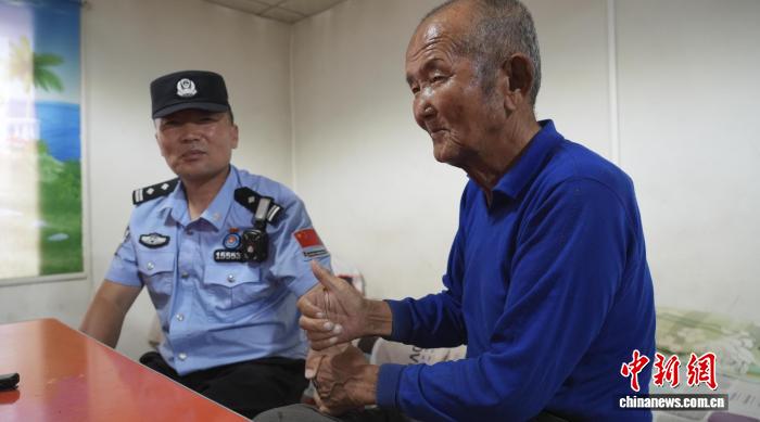 图为呼格吉勒(图左)走访辖区牧户。旷靖摄