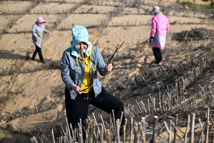 “这几年最大的感受是库布其的风变温柔了。”39岁的冯慧生长在沙区,从9岁开始就跟着父亲治沙植绿。在风沙肆虐的旧时光里,种下去的玉米种子时常被狂沙埋没。“植被挡住了风沙,耕地有了生态屏障,村民的日子越来越好。”冯慧说。