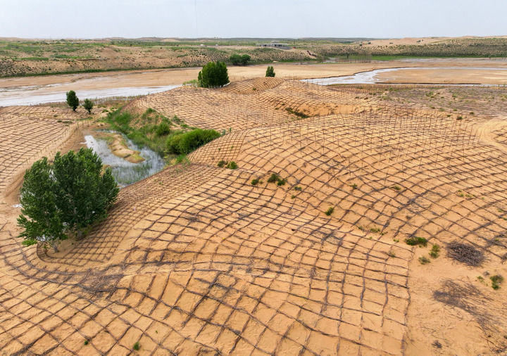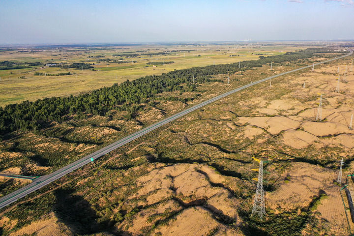 在沙漠腹地,沙区干部群众通过修建穿沙公路、开展“十大孔兑”生态治理,将寸草不生、飞鸟难越的浩瀚沙海分割成一个个治理单元。
