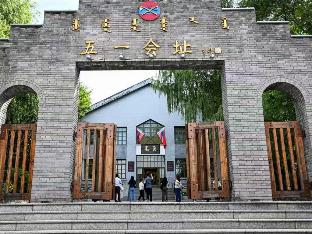 7月28日,采访团首站走进承载着厚重历史记忆的“五一大会”旧址。步入会堂,一幅幅珍贵的历史照片、一件件斑驳的实物展品映入眼帘。“1947年5月1日,内蒙古人民代表会议在这里召开,中国共产党领导的第一个省级民族自治区在这里诞生。”记者们驻足聆听讲解,不时用笔和镜头记录,用心感受内蒙古自治区人民政府诞生的庄严时刻。