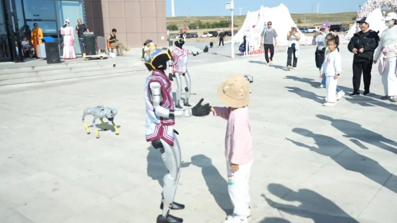 有人主动伸手与机器人握手,感受科技与人文碰撞的新鲜感。