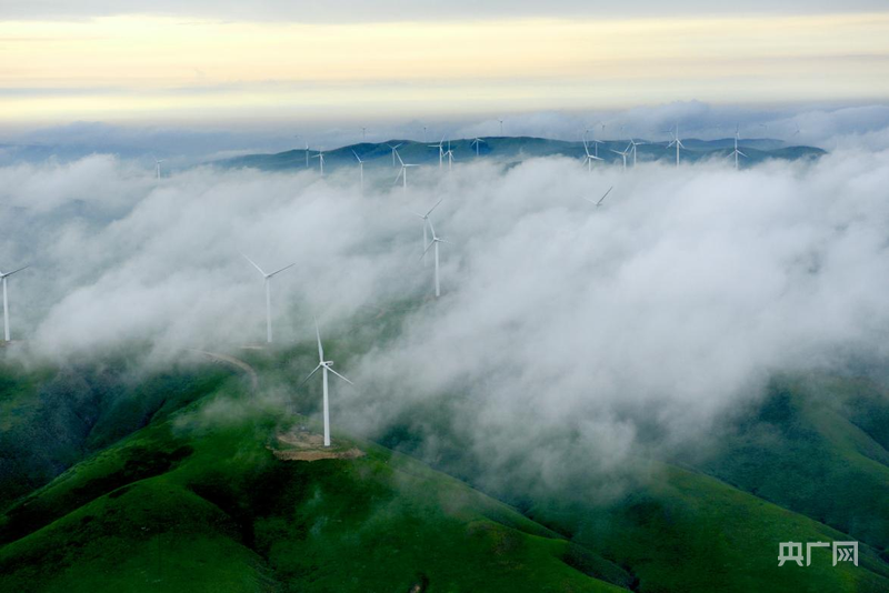 云雾缭绕中的风车(央广网发 霍林郭勒市融媒体中心供图)