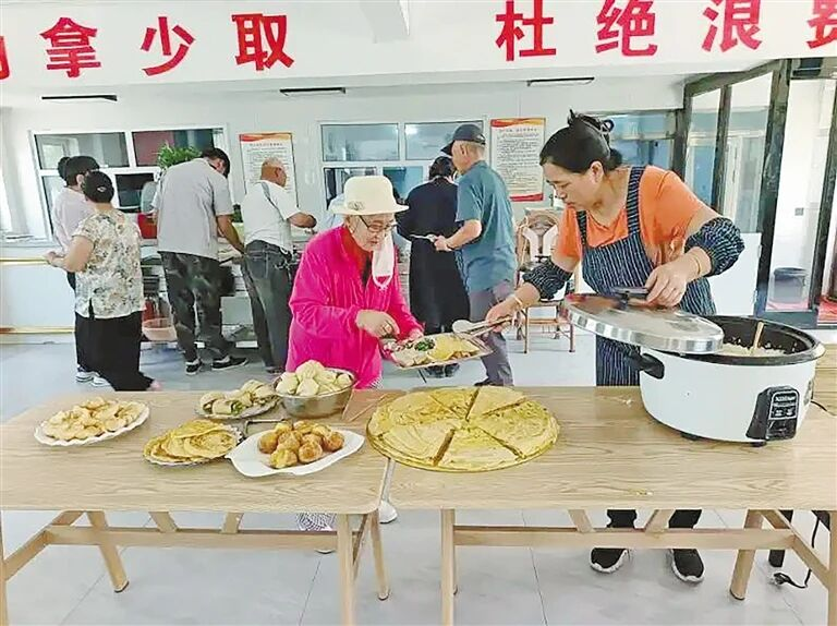 在呼伦贝尔市的长者食堂,工作人员为老人发餐。(图片来源:自治区民政厅)
