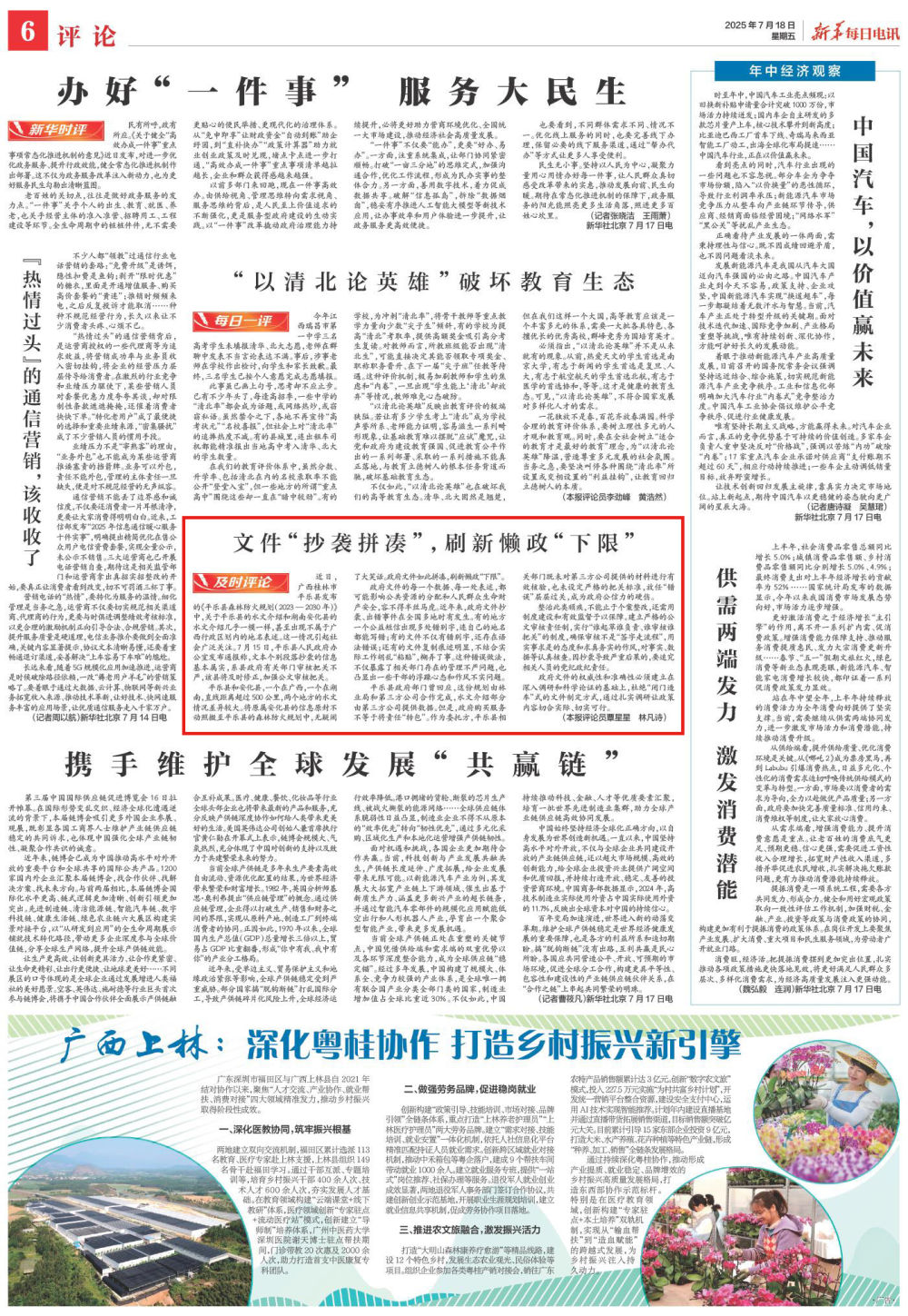 整治此类顽疾,不能止于个案整改,还需用制度建设和有效监督予以保障。建立严格的公文审核责任制,实行“谁起草谁负责、谁审核谁把关”的制度,确保审核不是“签字走流程”,用实事求是的态度和求真务实的作风,对事实、数据等认真核查。因抄袭导致严重后果的,要追究相关人员的党纪政纪责任。
