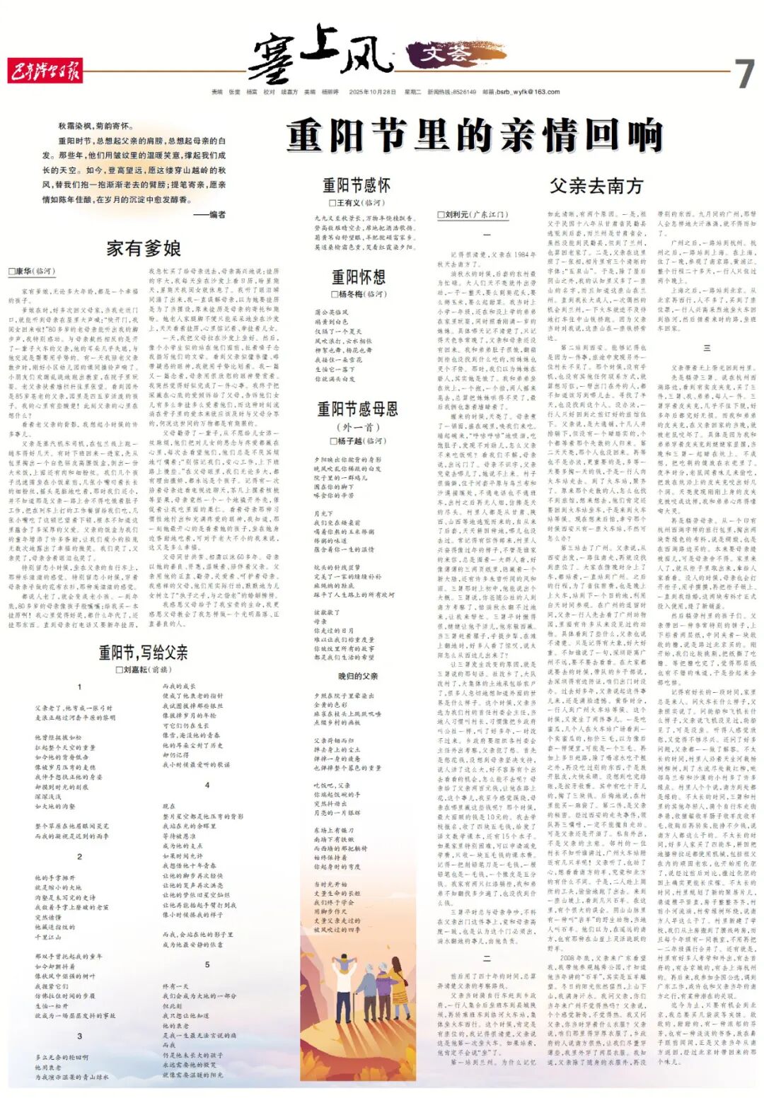 爹娘在时,好多次回父母家,当我走近门口,就能听到母亲在屋里大声喊:“快开门,我闺女回来啦!”80多岁的老母亲能听出我的脚步声,我特别感动。与母亲截然相反的是开了一辈子火车的父亲,他的耳朵几乎失聪,与他交流是需要用手势的。有一天我陪老父亲散步时,刚好小区幼儿园的课间操铃声响了。小朋友们欢蹦乱跳地跑出教室,在院子里玩耍。老父亲扶着墙栏杆往里张望。看到园外是85岁苍老的父亲,园里是四五岁活泼的孩子。我的心里有些酸楚!此刻父亲的心里在想什么?