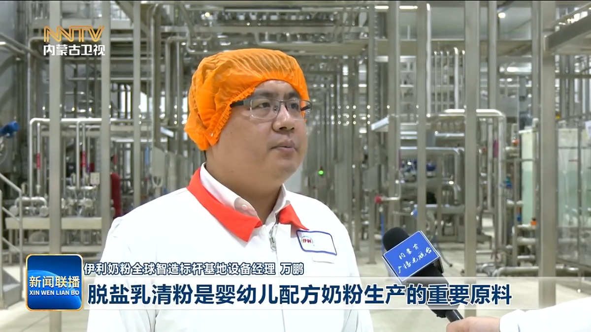 内蒙古台记者 姚顺其 我现在就是在呼和浩特市伊利健康谷奶粉三期智能制造车间。在我的身后,这条产线它的总面积有4300平方米。那么整座车间就是伊利新引入的全电渗析脱盐乳清产线。它的作用就是将奶酪生产过程中的副产品浓缩乳清液进行处理,制成生产婴幼儿配方奶粉的重要原料脱盐乳清粉。