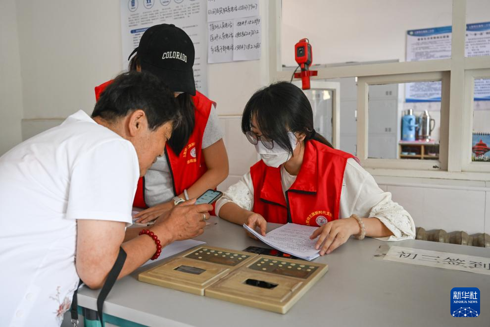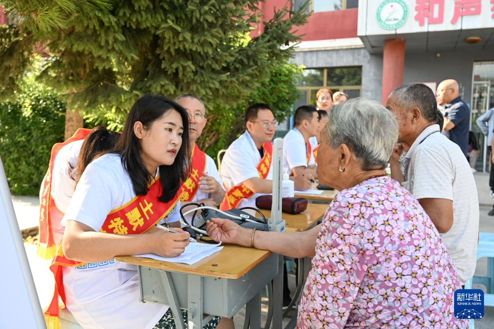 8月1日,医生(左)在内蒙古呼和浩特市土默特左旗一处临时安置点为群众义诊。