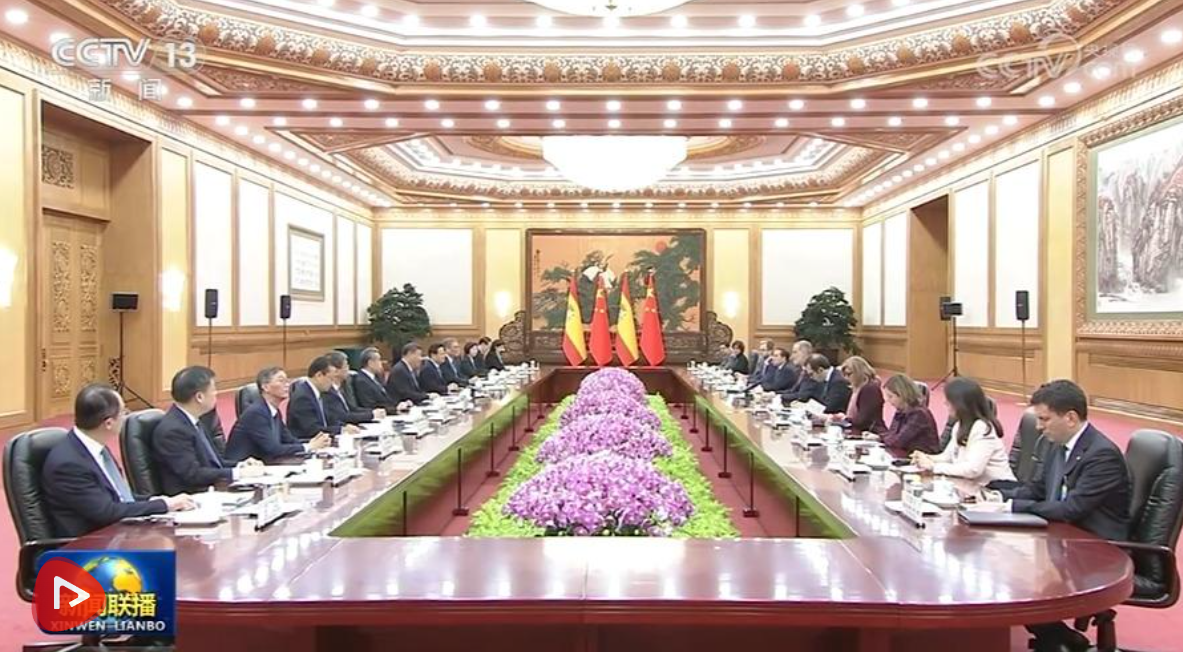 习近平欢迎费利佩六世国王访华,指出中国和西班牙都有深厚的历史文化底蕴。建交50多年来,两国坚持从战略高度和长远角度看待和发展双边关系,相互尊重、相互支持、相互成就,树立了不同历史文化、不同社会制度国家友好相处、共谋发展的典范,也为推动全球开放合作、维护国际公平正义发挥了重要作用。西班牙王室为中西关系发展作出了突出贡献。在两国迎来建立全面战略伙伴关系20周年之际,费利佩六世国王对中国进行国事访问,对推动两国友好合作不断向前发展具有重要意义。