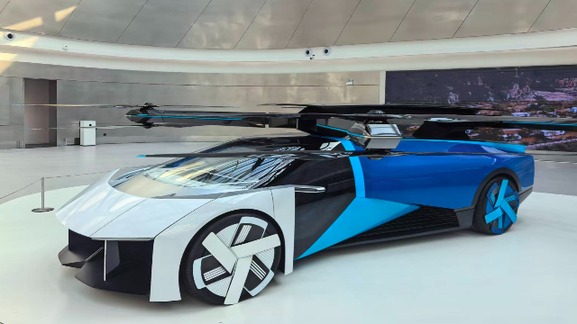小鹏汇天飞行汽车展厅内,多款炫酷飞行汽车令采访团记者大开眼界