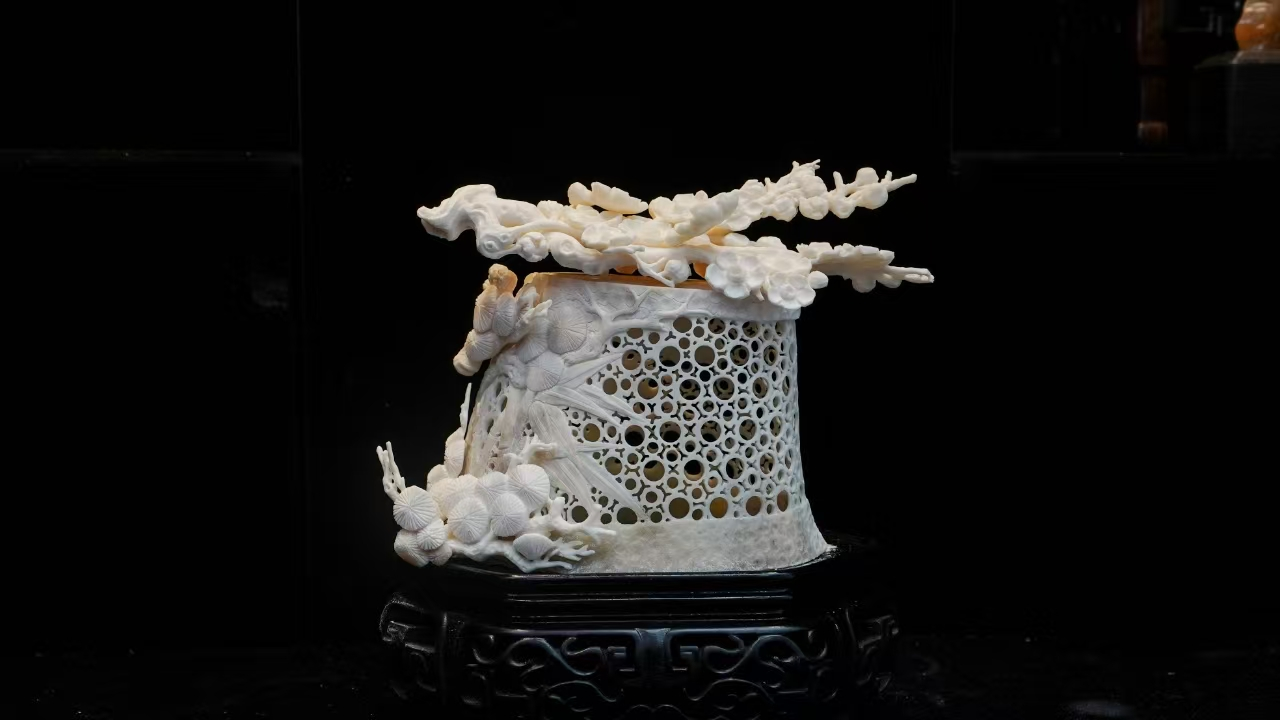 在这个工坊,雕刻技艺从原料处理到成品打磨的全流程场景被完整呈现,非物质文化遗产与数字技术在这里交相融合,焕发生机。该校信息工程系主任李洁璞介绍:“骨雕技艺中,每种纹样背后都藏着各美其美、美美与共的智慧,很多非遗技艺其实都是各民族文化交流的见证。工坊是我们打造的产教融合延伸平台,将文创产品开发与非遗传承项目相结合,真正让沉淀千年的非遗技艺,在快速发展的现代社会中留下传承印记,铸牢中华民族共同体意识。”