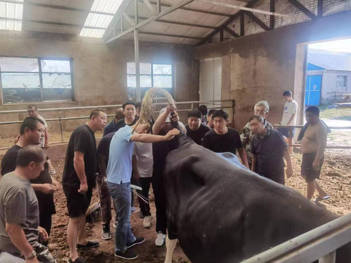 锡林郭勒职业学院师生在合作企业进行牛的健康监测、疫病防控实操