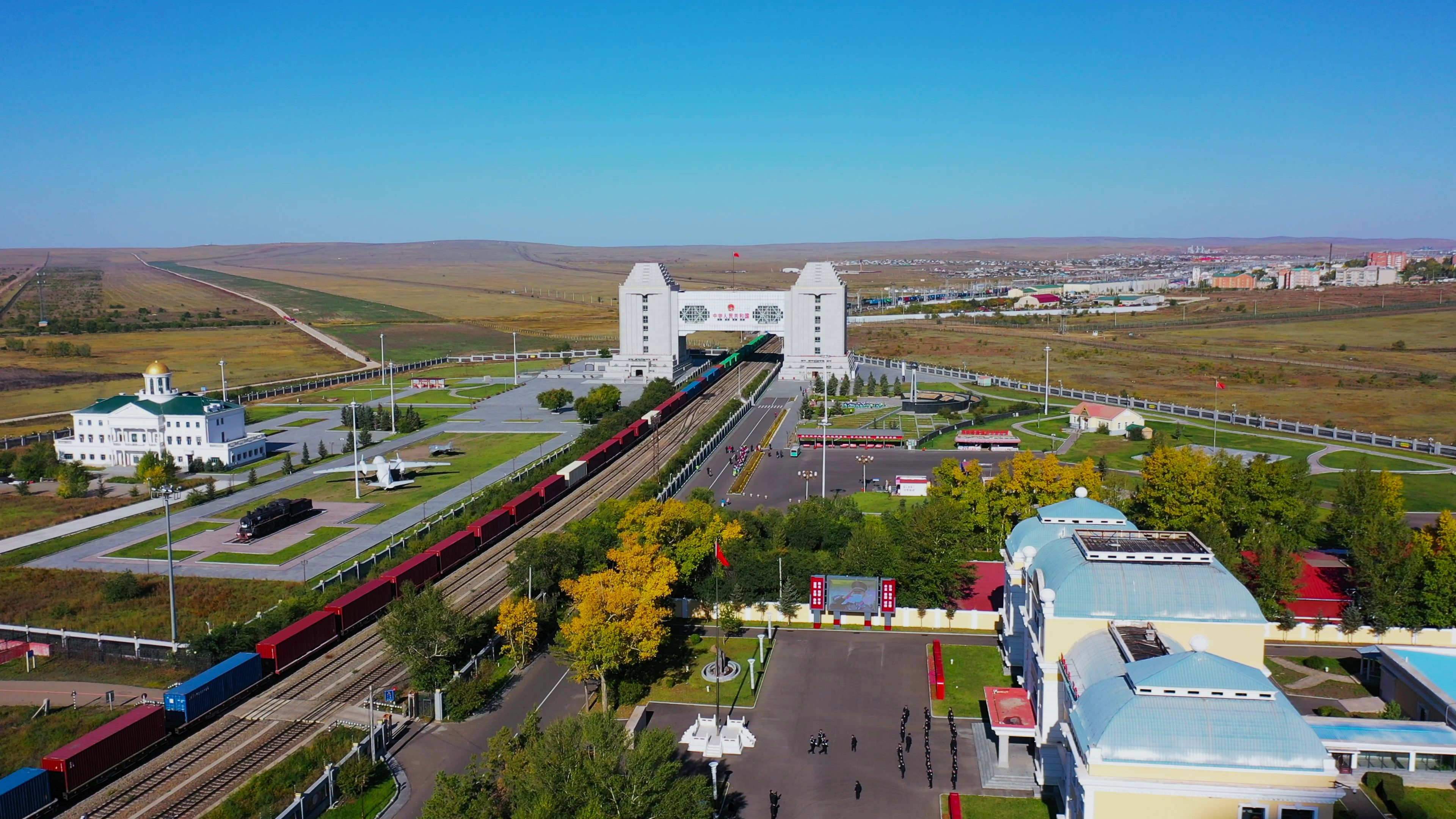一辆满载货物的中欧班列驶出国门。李新军 摄