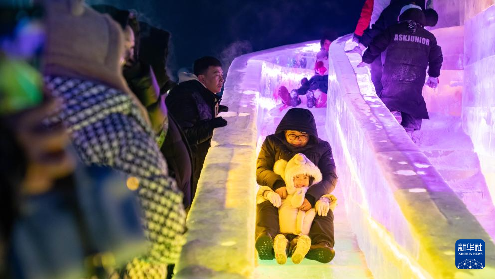 人们在呼和浩特第五届欢乐冰雪节上游玩(2025年12月31日摄)。