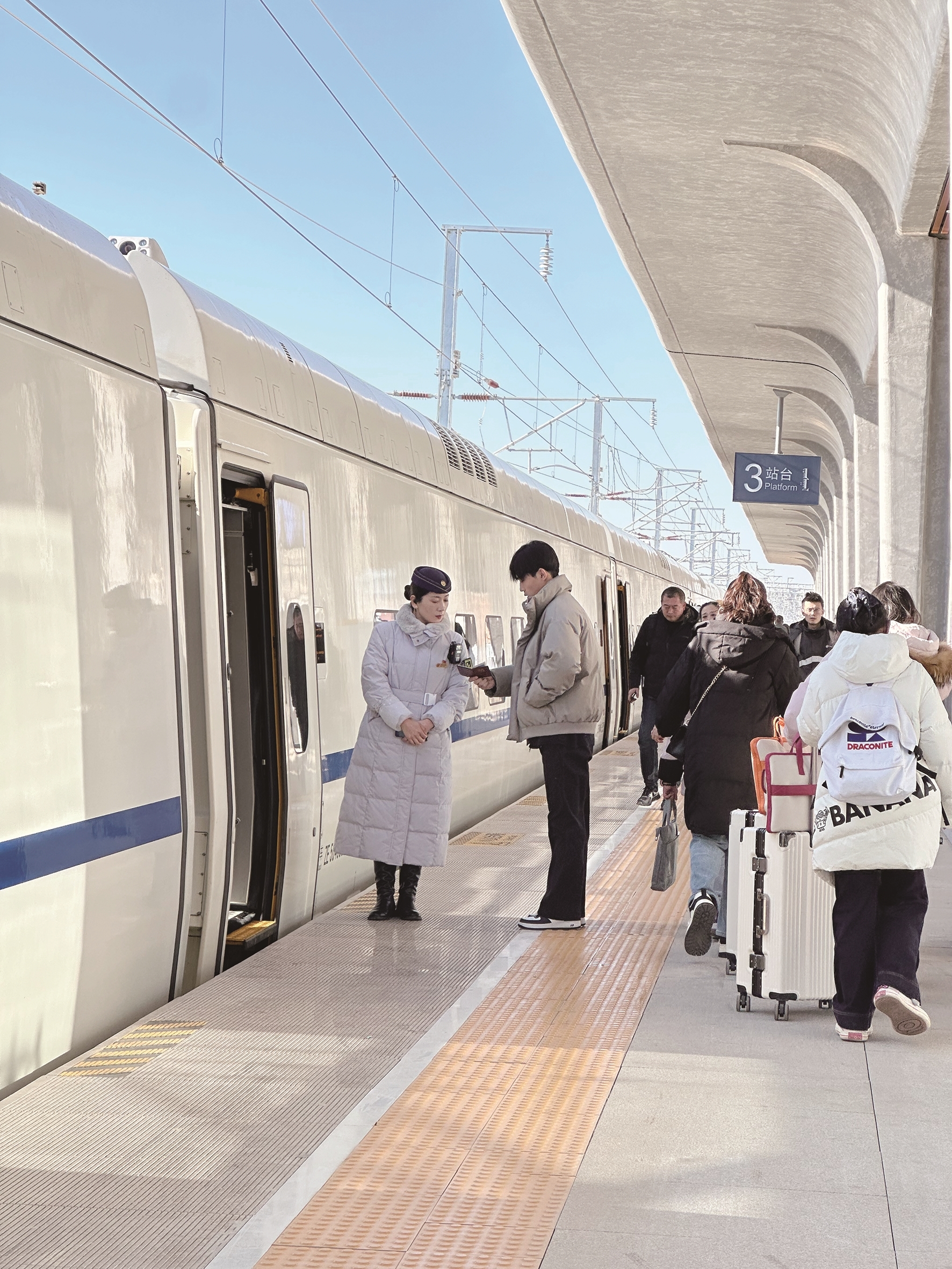 更深层的温暖,藏于服务的细微之处。上午11时许,临河运营维修段客运值班员孙超结束了一班动车的保障工作。她手中捏着一张记录车次和站台号、已被摩挲得微微卷边的小纸条,这是她应对“车次更多、站台更复杂”新情况的“法宝”。“常听旅客说,有了高铁,家感觉更近了,能常回来看看。”已在铁路一线工作16年的孙超,亲眼见证了从绿皮车到高铁的时代变迁,“拉近家的距离”是她听到的最暖心的话。