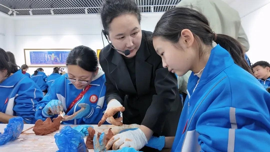 在阿拉腾其木格的指导下,学生们分组动手实践,揉泥、捶打、塑形、精雕,每一个步骤都做得格外认真。学生潘存昕捧着自己刚刚完成的红驼泥塑兴奋地说:“跟着非遗老师,我把‘一团泥’变成了威风的小骆驼,太有成就感了。”