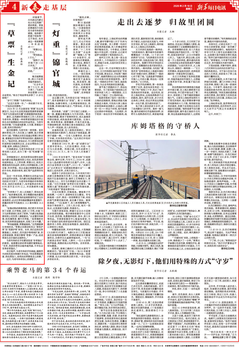 牧民马希布和在自家羊圈里向记者展示“草票”(2月14日摄)。新华每日电讯记者张典标摄