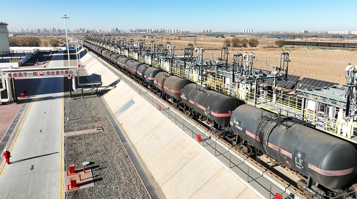 上午10时30分,满载原油的列车从栈桥缓缓驶出,承载着能源保供的使命奔向远方。