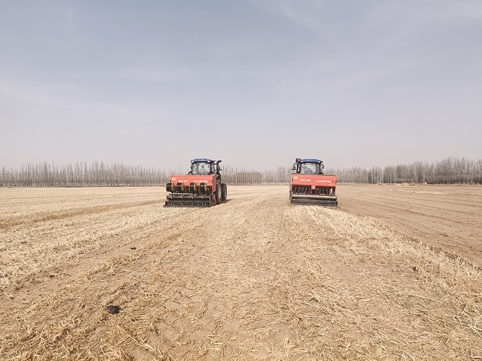 3月12日,市现代农牧事业发展中心联合磴口县农牧业技术推广中心,前往磴口县沙金套海苏木巴音宝力格嘎查开展沙地小麦立体匀播(等深无垄)技术示范播种。现场地块未进行提前整地,直接开展机械化播种作业,充分展现了该项技术轻简化、一体化的突出优势,为今年沙地粮食生产提质增效打下坚实基础。