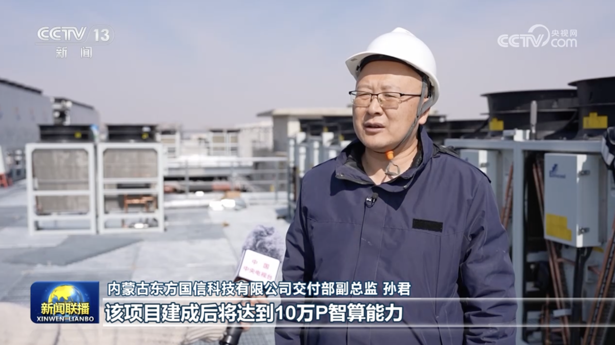 内蒙古东方国信科技有限公司交付部副总监 孙君:该项目建成后将达到10万P智算能力,成为华北规模领先的液冷智算基地,践行算电协同与绿电直供。