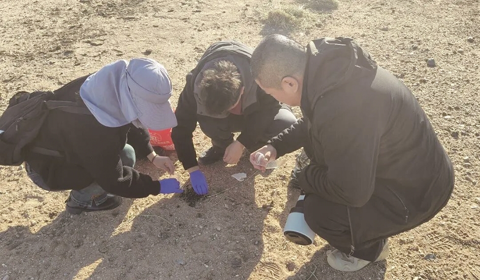 巴彦淖尔市开展蒙古野驴野化放归个体粪便样本采集工作