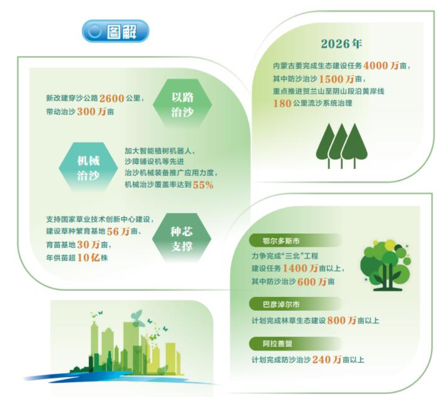2026年1月1日,《内蒙古自治区防沙治沙条例》正式施行,为生态建设提供了法治保障。
