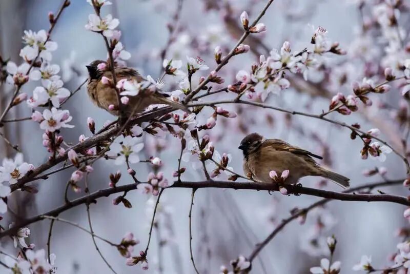 鸟儿舒展羽翼驻足花间