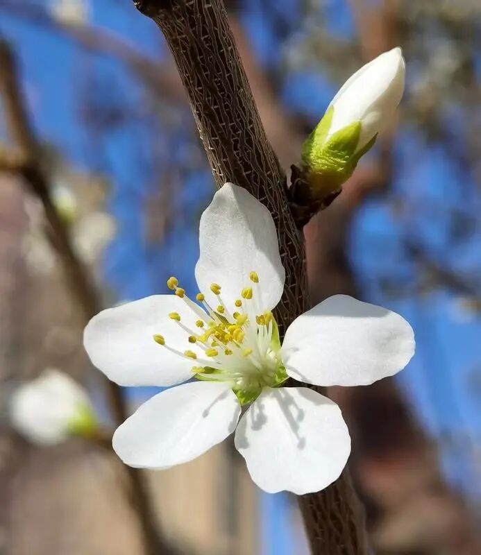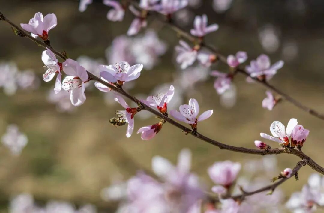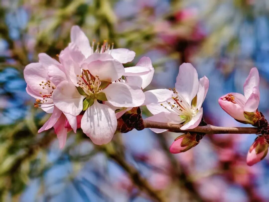 枝头繁花灼灼映着塞上晴空