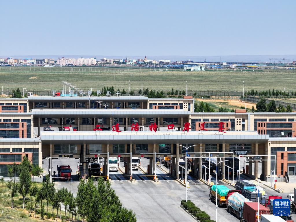 2025年6月22日拍摄的二连浩特公路口岸(无人机照片)。新华社记者 贝赫 摄
