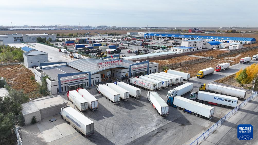 这是2025年10月10日拍摄的二连浩特边民互市贸易区(无人机照片)。新华社发(郭鹏杰 摄)
