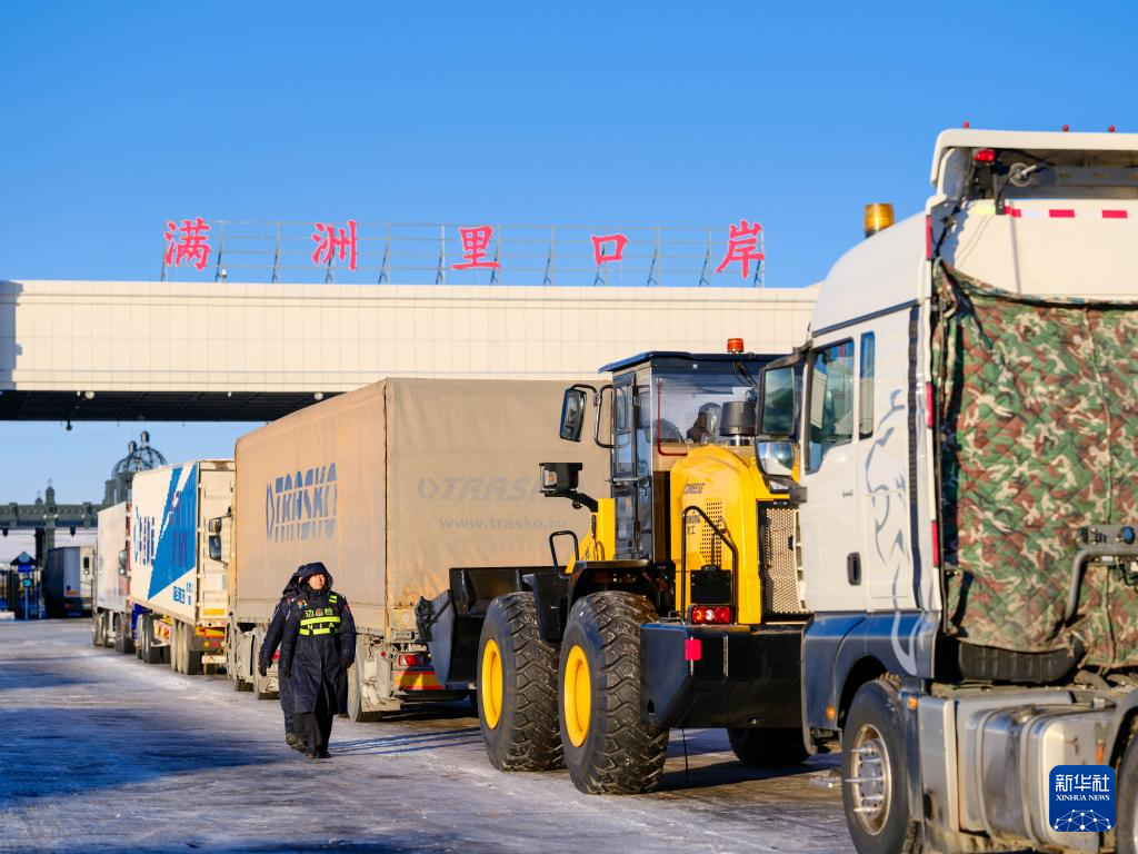 2025年12月23日,出境货车排队通过满洲里公路口岸。新华社记者 马金瑞 摄