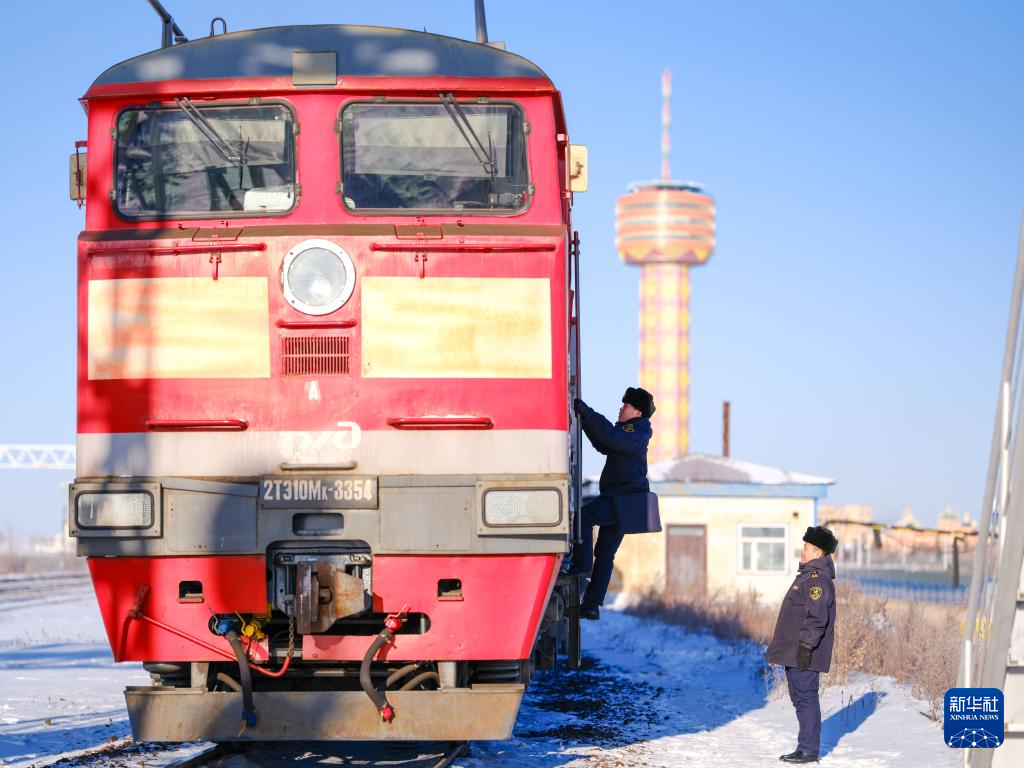 2025年12月24日,满洲里车站海关关员对入境中欧班列开展监管工作。新华社记者 马金瑞 摄